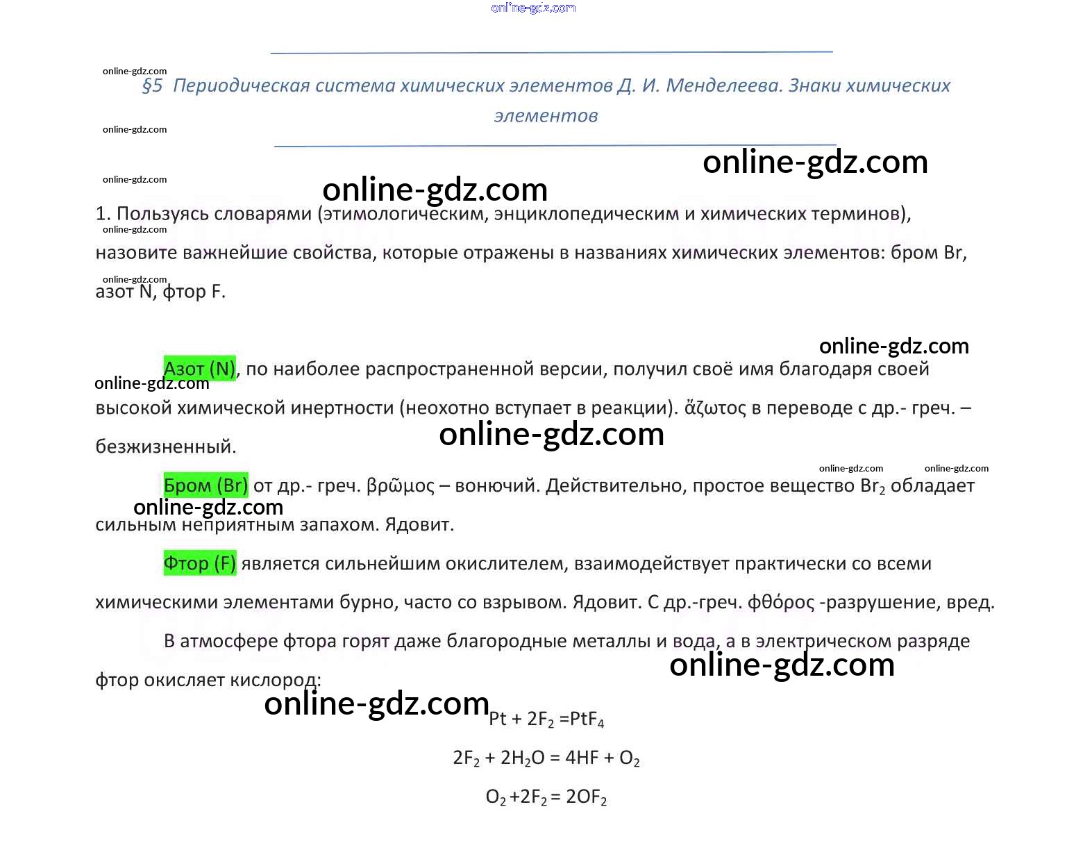 Готовые домашние задания по Химии за 8 класс Учебник Габриелян Вертикаль 2019 - §5. Периодическая система химических элементов Д. И. Менделеева. Знаки химических элементов 1