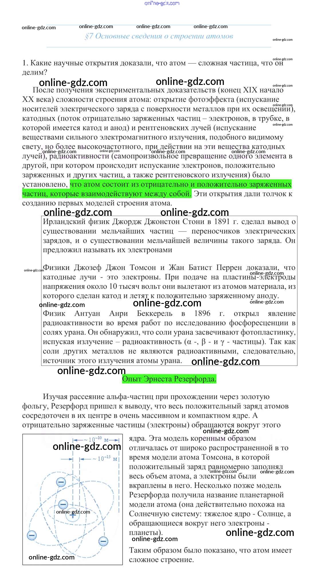 Готовые домашние задания по Химии за 8 класс Учебник Габриелян Вертикаль 2019 - §7. Основные сведения о строении атомов 1
