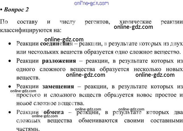 Готовые домашние задания по Химии за 8 класс Учебник Габриелян, Остроумов 2021 - §11. Типы химических реакций 2