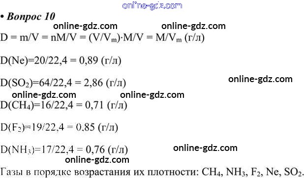 Готовые домашние задания по Химии за 8 класс Учебник Габриелян, Остроумов 2021 - §19. Молярный объём газов 10