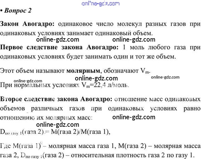 Готовые домашние задания по Химии за 8 класс Учебник Габриелян, Остроумов 2021 - §19. Молярный объём газов 2