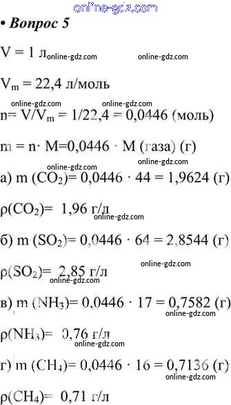 Готовые домашние задания по Химии за 8 класс Учебник Габриелян, Остроумов 2021 - §19. Молярный объём газов 5