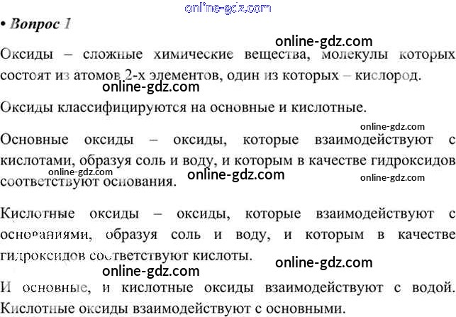 Готовые домашние задания по Химии за 8 класс Учебник Габриелян, Остроумов 2021 - §23. Оксиды, их классификация и химические свойства 1