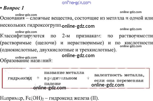 Готовые домашние задания по Химии за 8 класс Учебник Габриелян, Остроумов 2021 - §24. Основания, их классификация и химические свойства 1