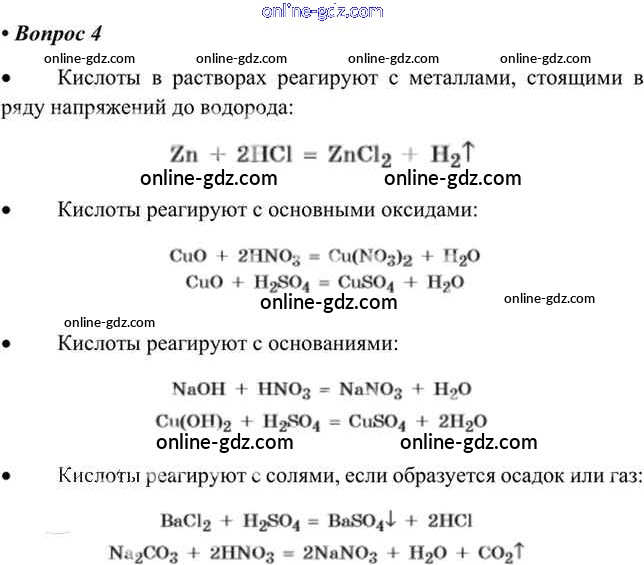 Готовые домашние задания по Химии за 8 класс Учебник Габриелян, Остроумов 2021 - §25. Кислоты, их классификация и химические свойства 4