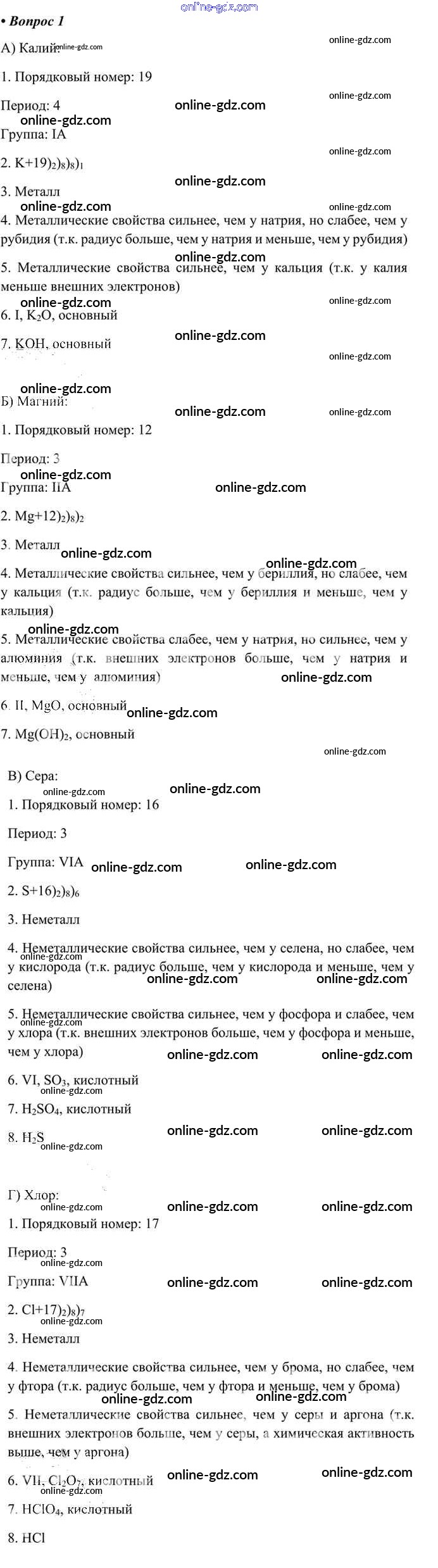Готовые домашние задания по Химии за 8 класс Учебник Габриелян, Остроумов 2021 - §33. Характеристика элемента по его положению в периодической системе 1
