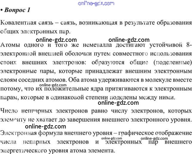 Готовые домашние задания по Химии за 8 класс Учебник Габриелян, Остроумов 2021 - §35. Ковалентная химическая связь 1