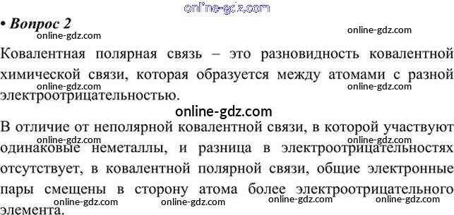 Готовые домашние задания по Химии за 8 класс Учебник Габриелян, Остроумов 2021 - §36. Ковалентная неполярная и полярная химическая связь 2