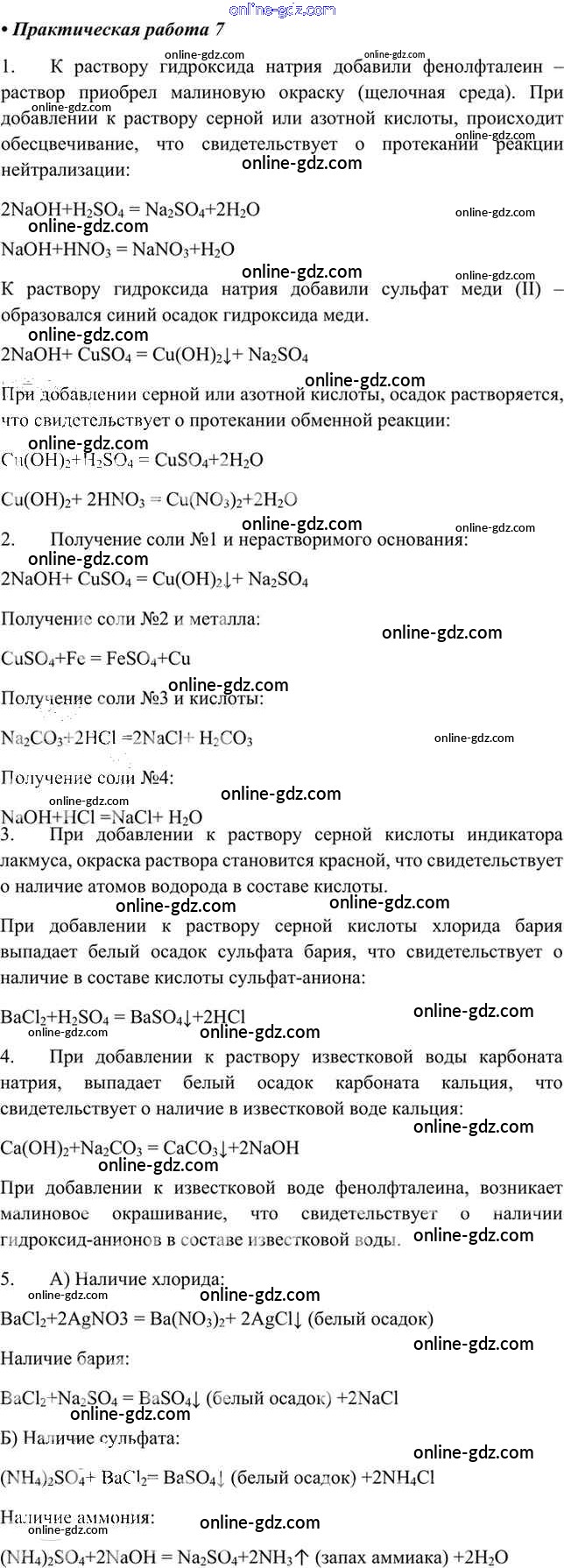 Готовые домашние задания по Химии за 8 класс Учебник Габриелян, Остроумов 2021 - Практические работы 7