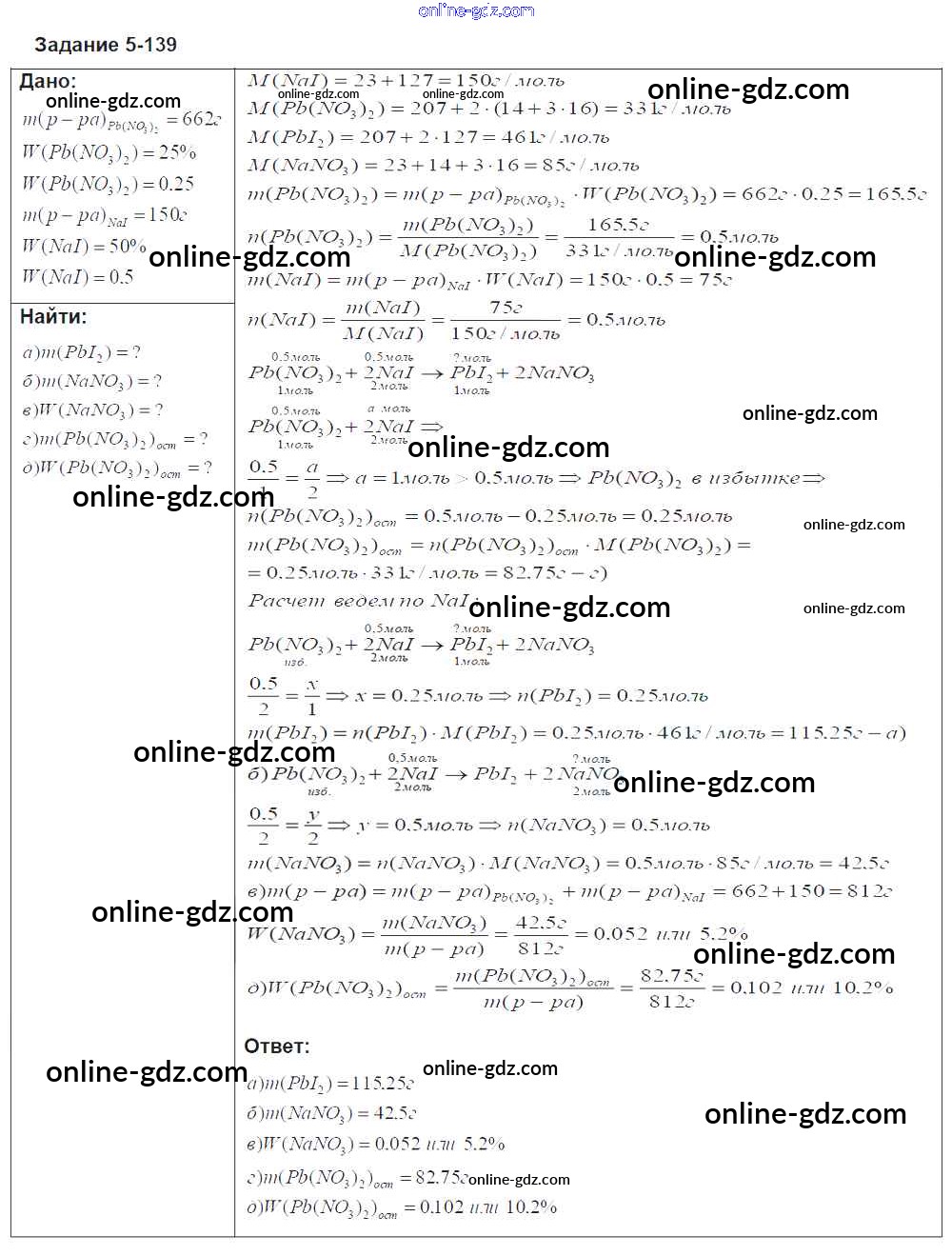 Готовые домашние задания по Химии за 8 класс Задачник Кузнецова, Левкин Алгоритм успеха 2015 - Глава 5 139