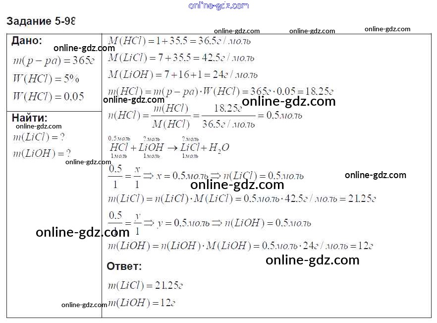 Готовые домашние задания по Химии за 8 класс Задачник Кузнецова, Левкин Алгоритм успеха 2015 - Глава 5 98
