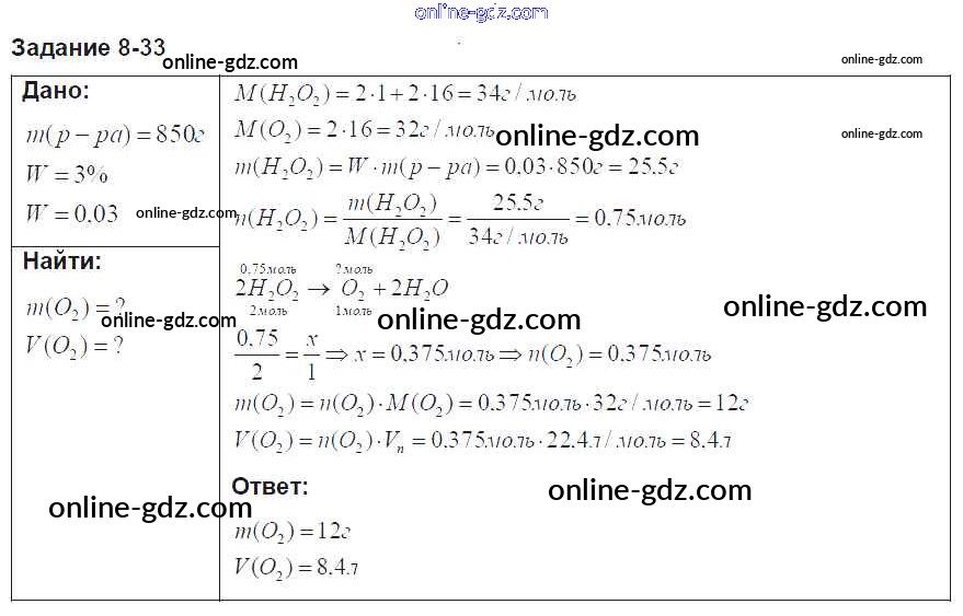 Готовые домашние задания по Химии за 8 класс Задачник Кузнецова, Левкин Алгоритм успеха 2015 - Глава 8 33