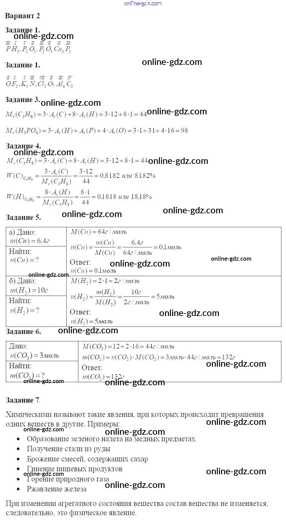 Готовые домашние задания по Химии за 8 класс Задачник Кузнецова, Левкин Алгоритм успеха 2015 - Глава 1 Контрольные работы 2