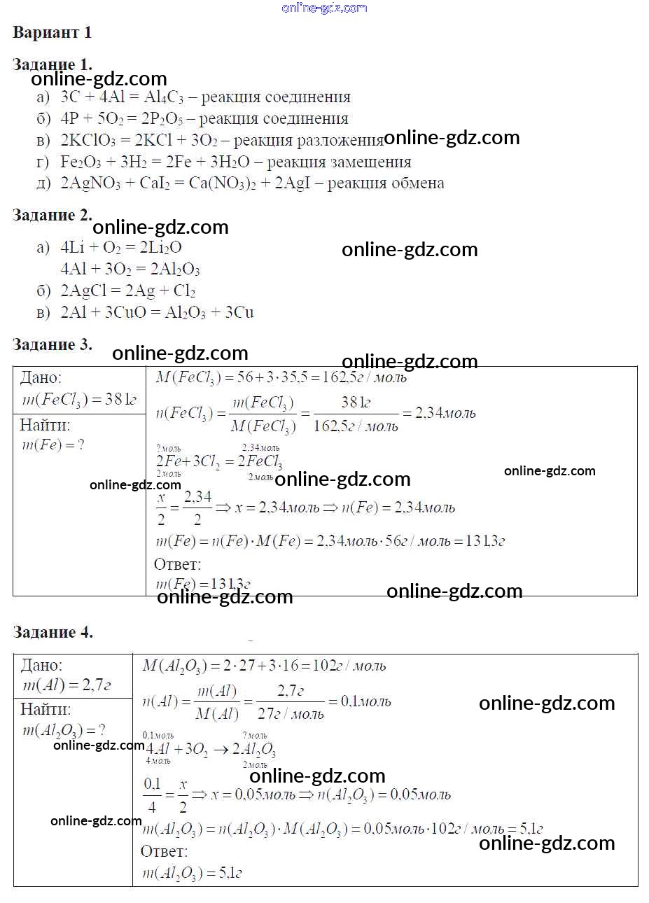 Готовые домашние задания по Химии за 8 класс Задачник Кузнецова, Левкин Алгоритм успеха 2015 - Глава 2 Контрольные работы 1