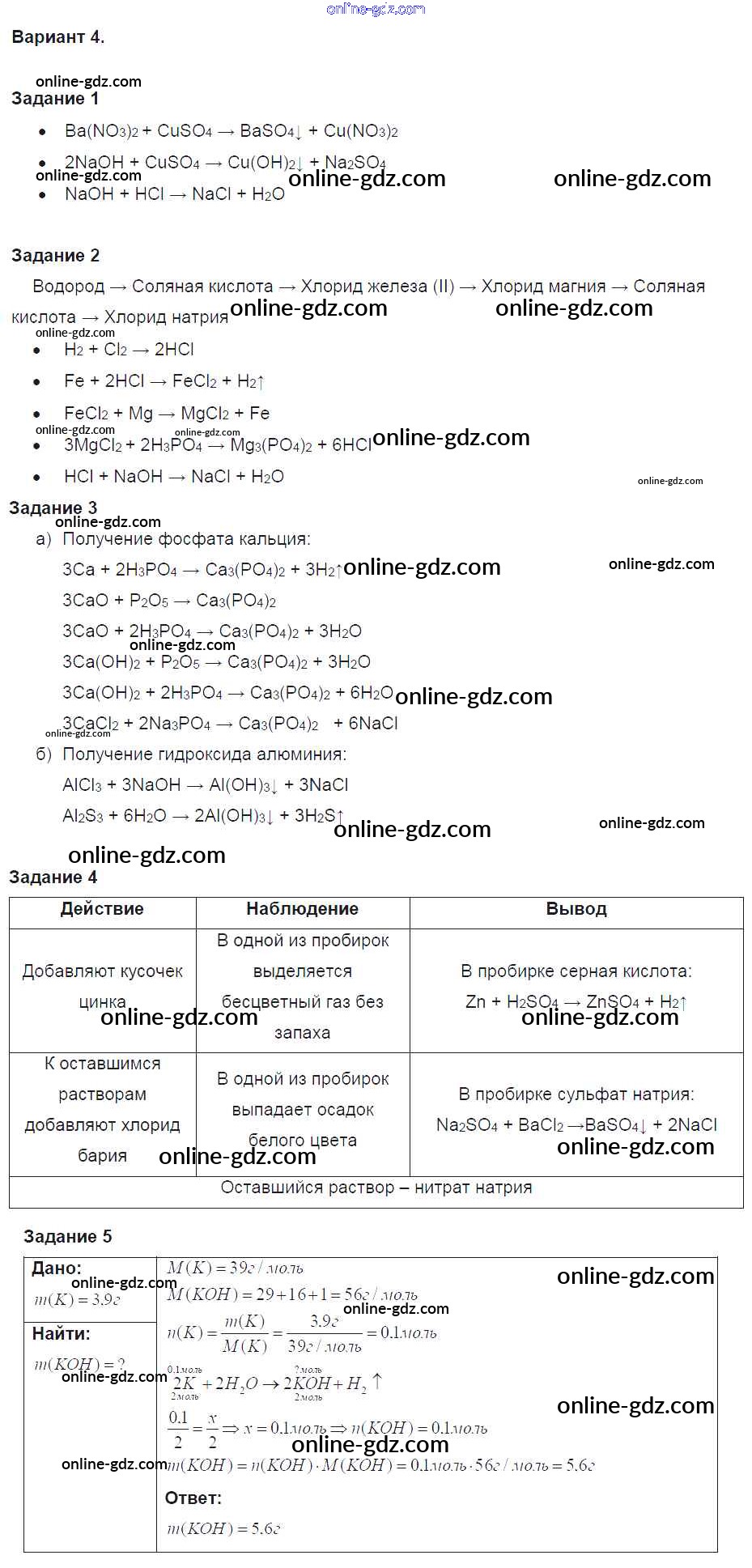 Готовые домашние задания по Химии за 8 класс Задачник Кузнецова, Левкин Алгоритм успеха 2015 - Глава 5 Контрольные работы 4