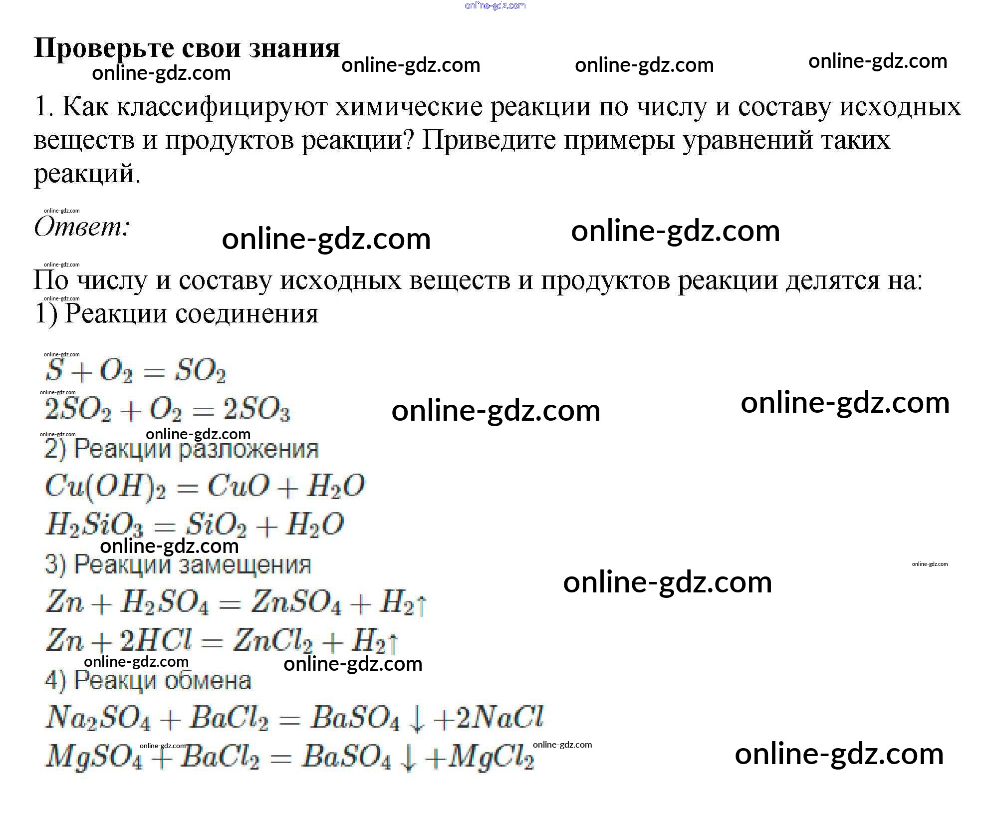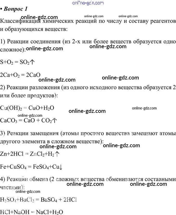Готовые домашние задания по Химии за 9 класс Учебник Габриелян, Остроумов 2021 - §2. Классификация химических реакций 1