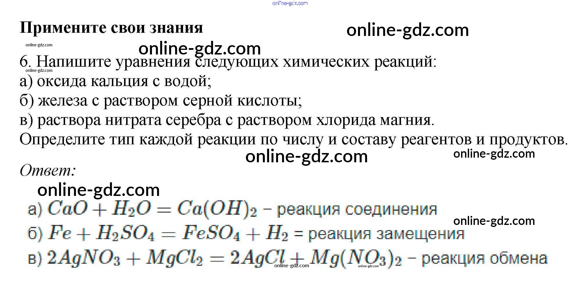 Готовые домашние задания по Химии за 9 класс Учебник Габриелян, Остроумов 2021 - §2. Классификация химических реакций 6