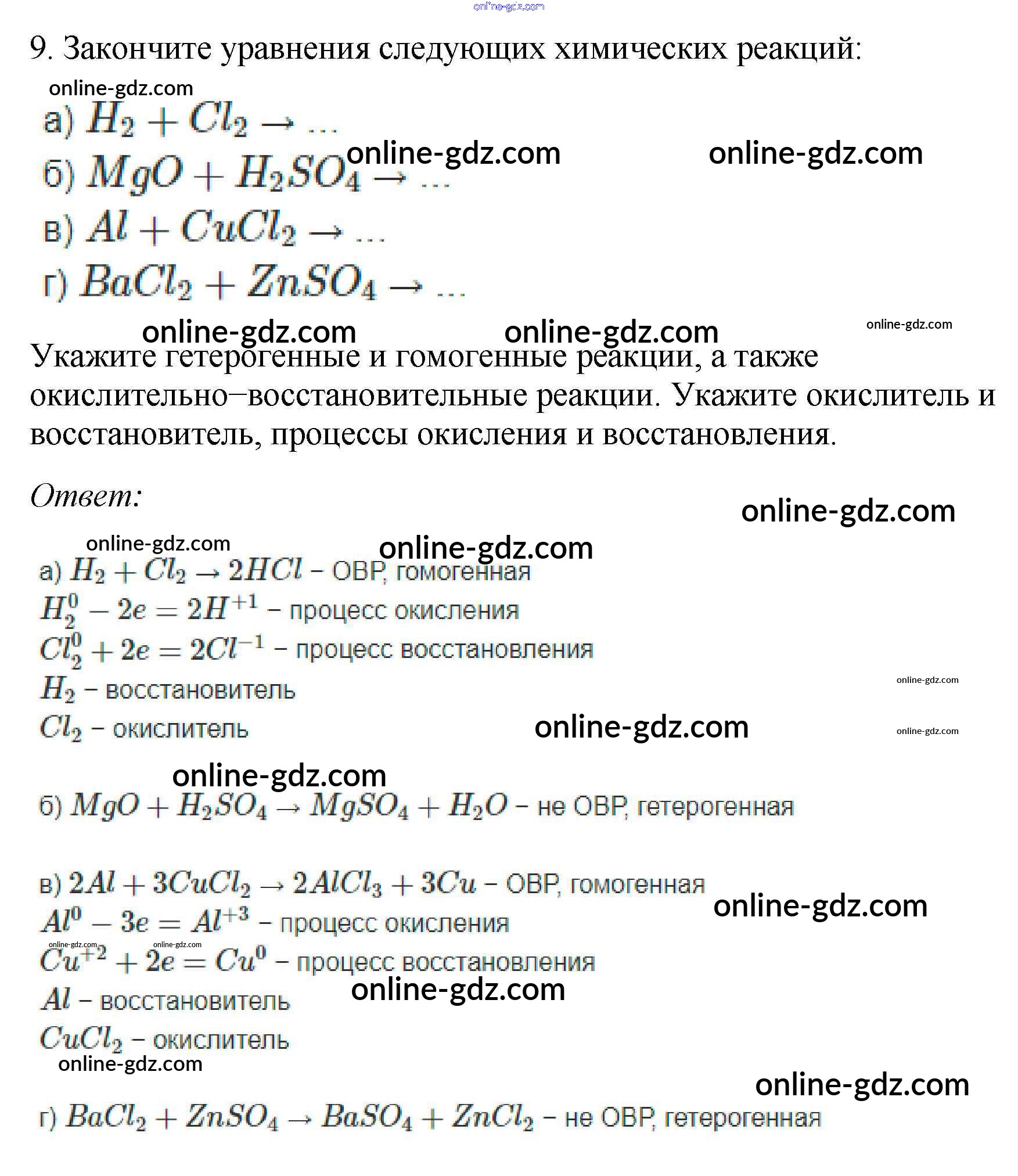 Готовые домашние задания по Химии за 9 класс Учебник Габриелян, Остроумов 2021 - §2. Классификация химических реакций 9