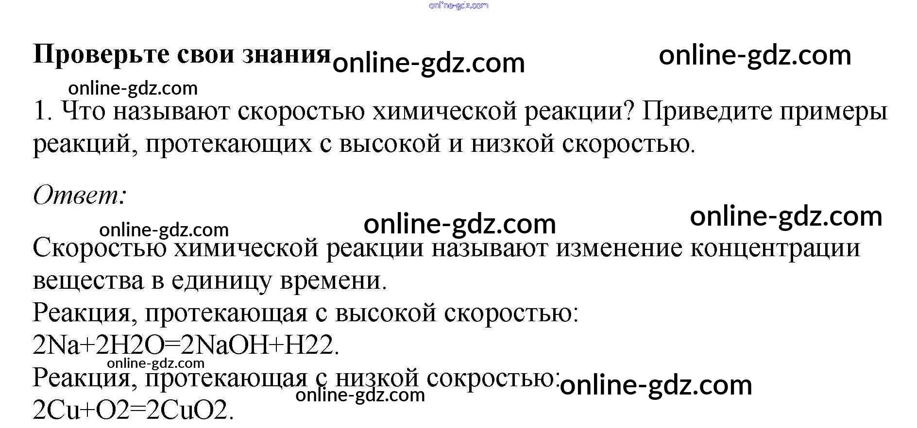Готовые домашние задания по Химии за 9 класс Учебник Габриелян, Остроумов 2021 - §3. Скорость химических реакций. Катализ 1