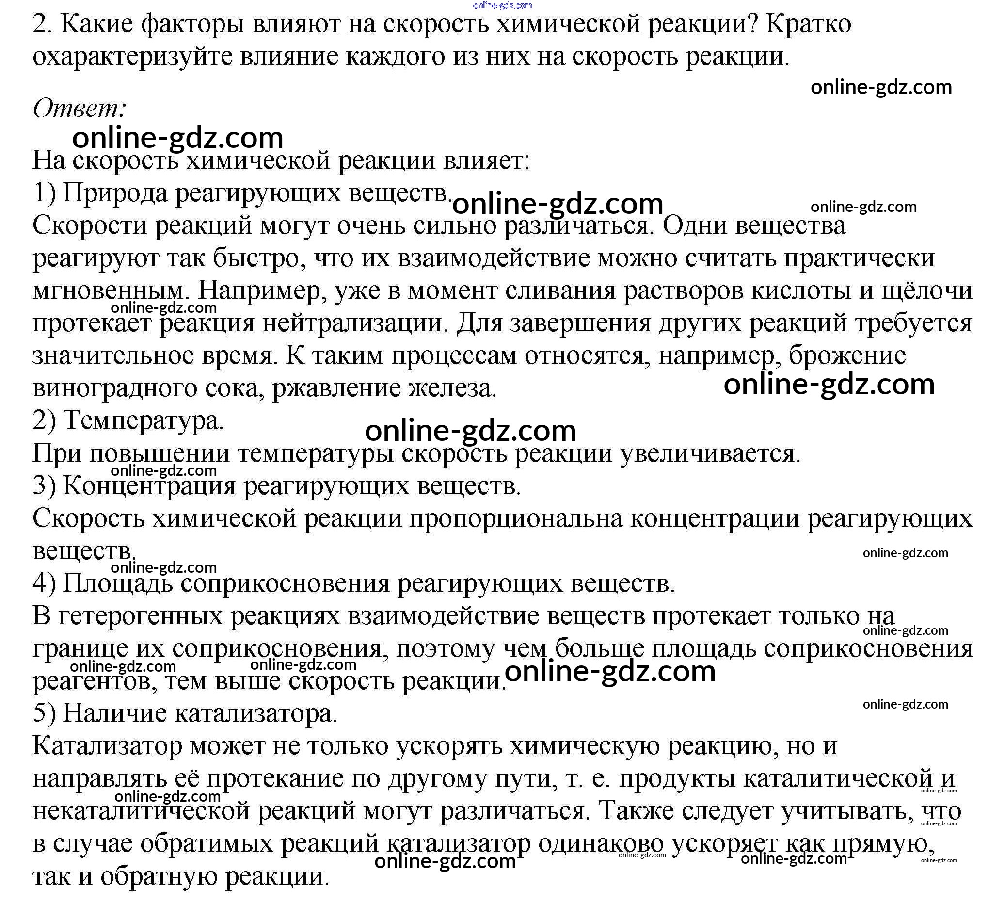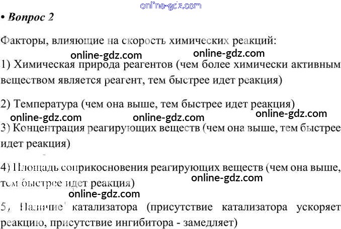 Готовые домашние задания по Химии за 9 класс Учебник Габриелян, Остроумов 2021 - §3. Скорость химических реакций. Катализ 2