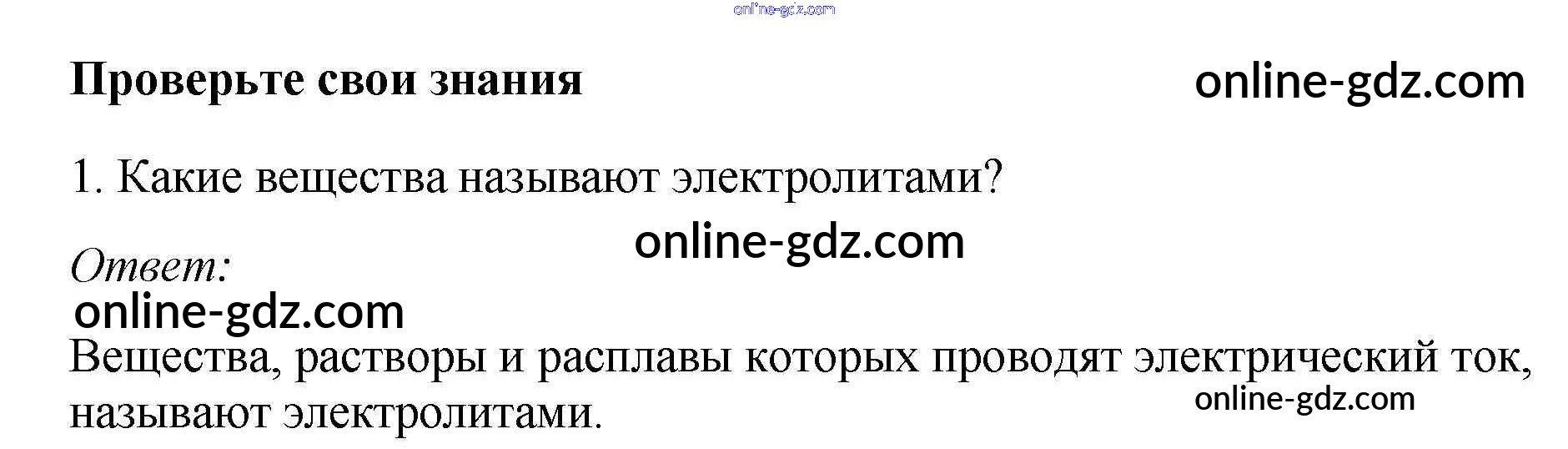Готовые домашние задания по Химии за 9 класс Учебник Габриелян, Остроумов 2021 - §4. Электролитическая диссоциация 1