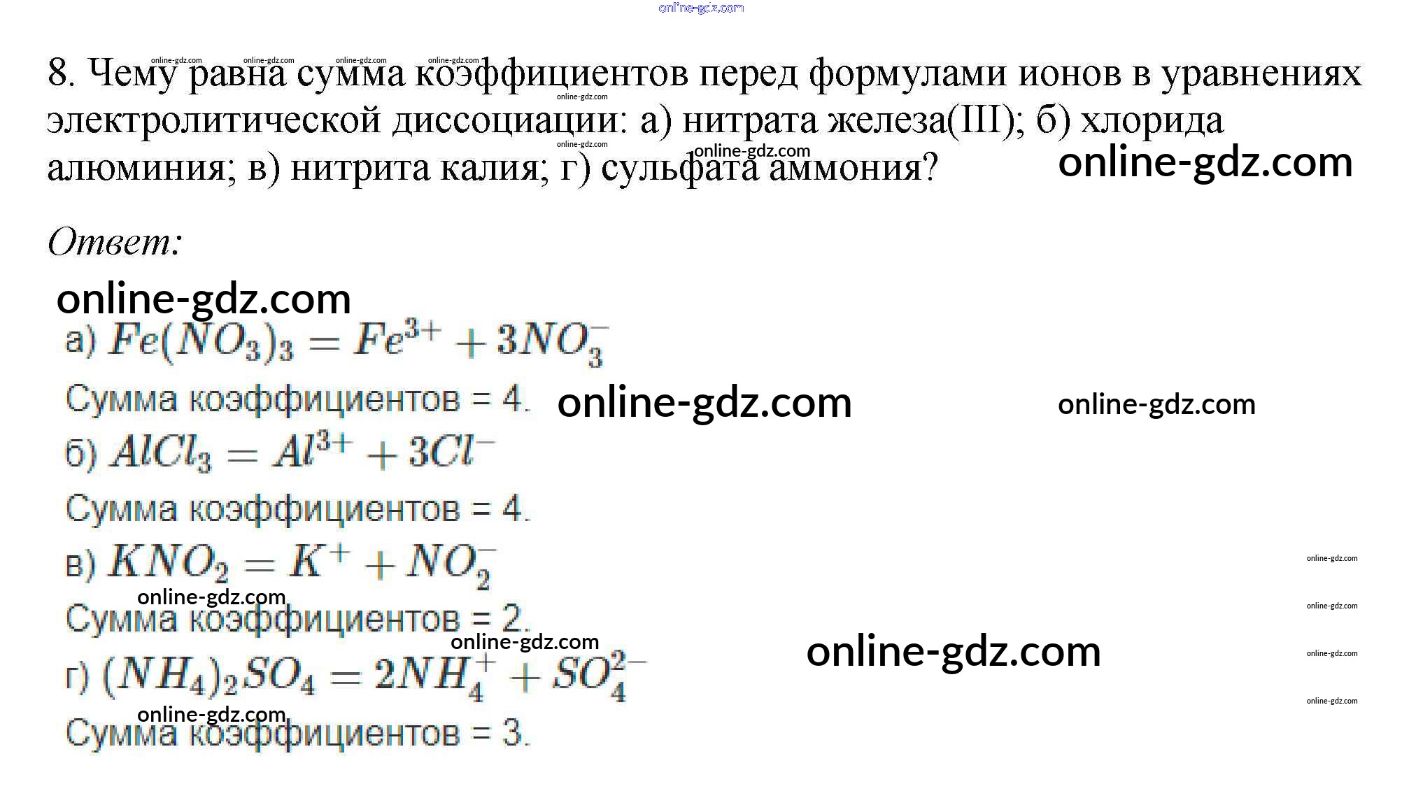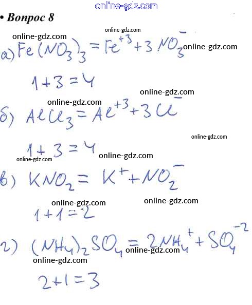 Готовые домашние задания по Химии за 9 класс Учебник Габриелян, Остроумов 2021 - §4. Электролитическая диссоциация 8