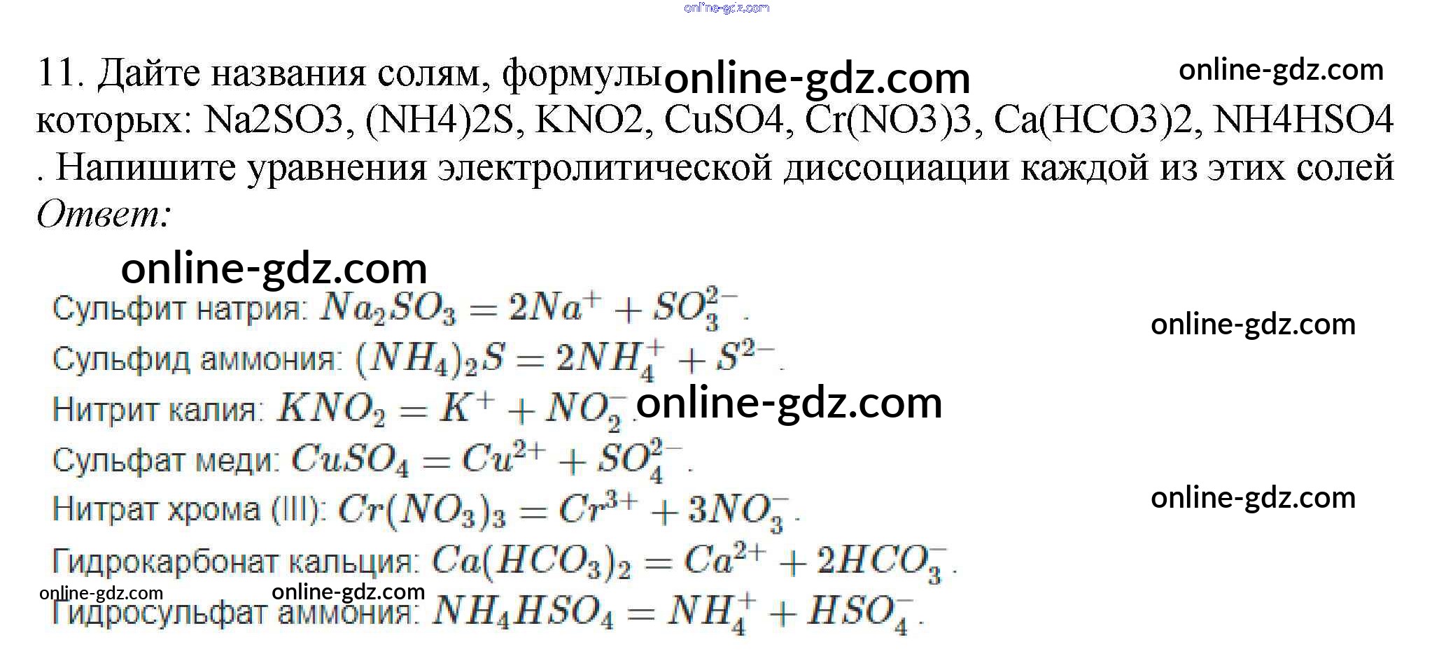 Готовые домашние задания по Химии за 9 класс Учебник Габриелян, Остроумов 2021 - §5. Основные положения теории электролитической диссоциации 11