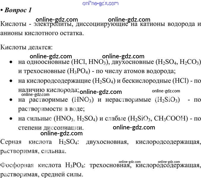 Готовые домашние задания по Химии за 9 класс Учебник Габриелян, Остроумов 2021 - §6. Химические свойства кислот как электролитов 1