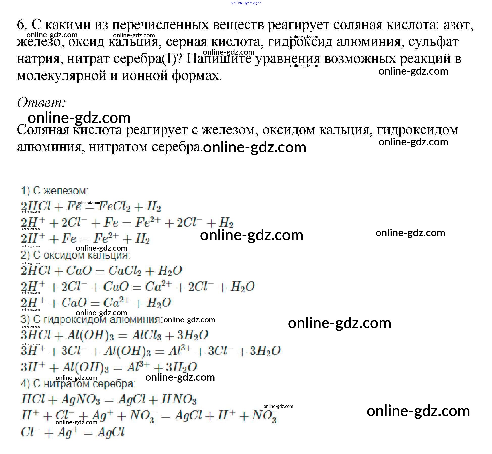 Готовые домашние задания по Химии за 9 класс Учебник Габриелян, Остроумов 2021 - §6. Химические свойства кислот как электролитов 6