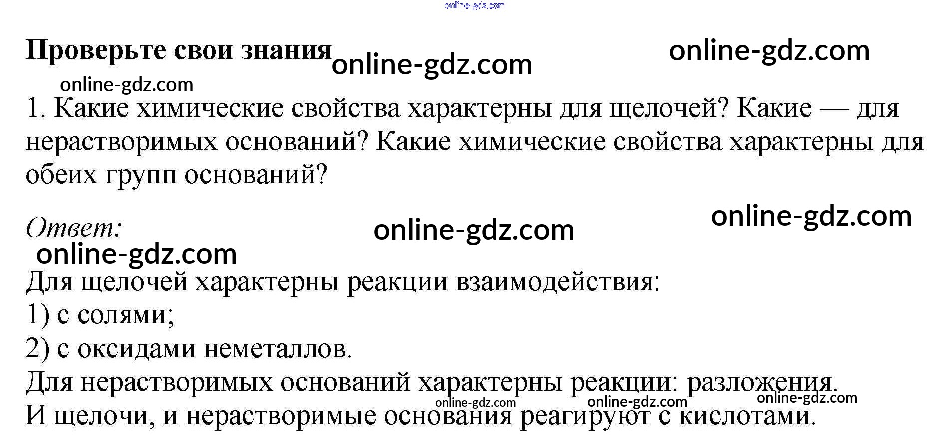 Готовые домашние задания по Химии за 9 класс Учебник Габриелян, Остроумов 2021 - §7. Химические свойства оснований как электролитов 1