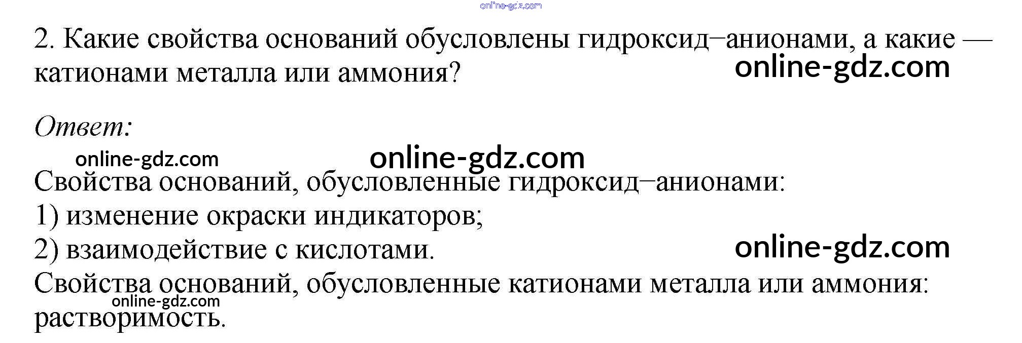 Готовые домашние задания по Химии за 9 класс Учебник Габриелян, Остроумов 2021 - §7. Химические свойства оснований как электролитов 2