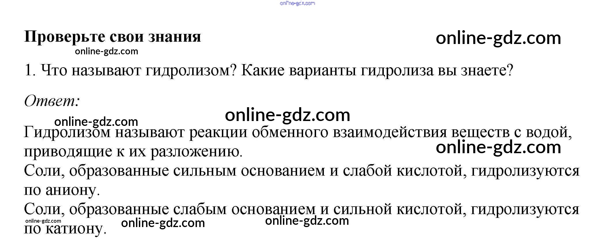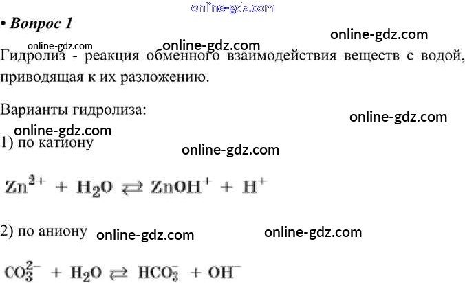 Готовые домашние задания по Химии за 9 класс Учебник Габриелян, Остроумов 2021 - §9. Гидролиз солей 1
