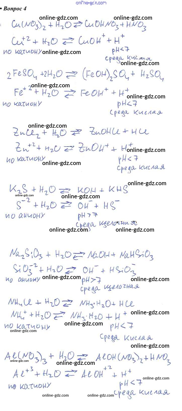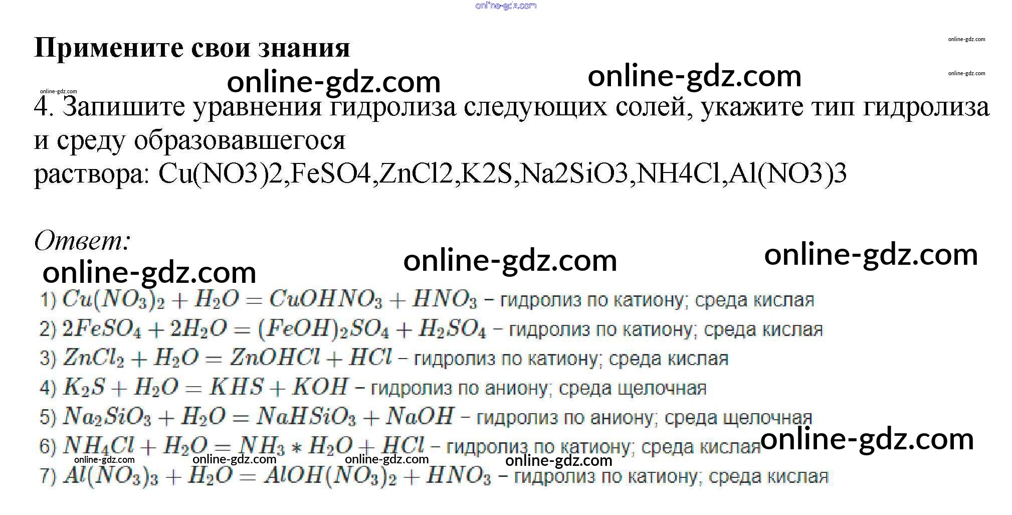 Готовые домашние задания по Химии за 9 класс Учебник Габриелян, Остроумов 2021 - §9. Гидролиз солей 4