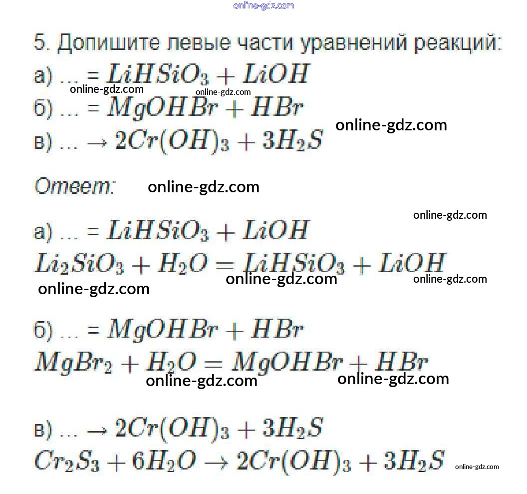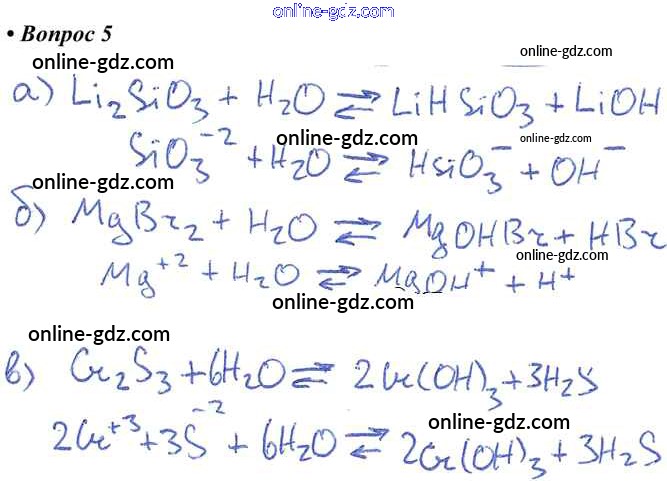 Готовые домашние задания по Химии за 9 класс Учебник Габриелян, Остроумов 2021 - §9. Гидролиз солей 5