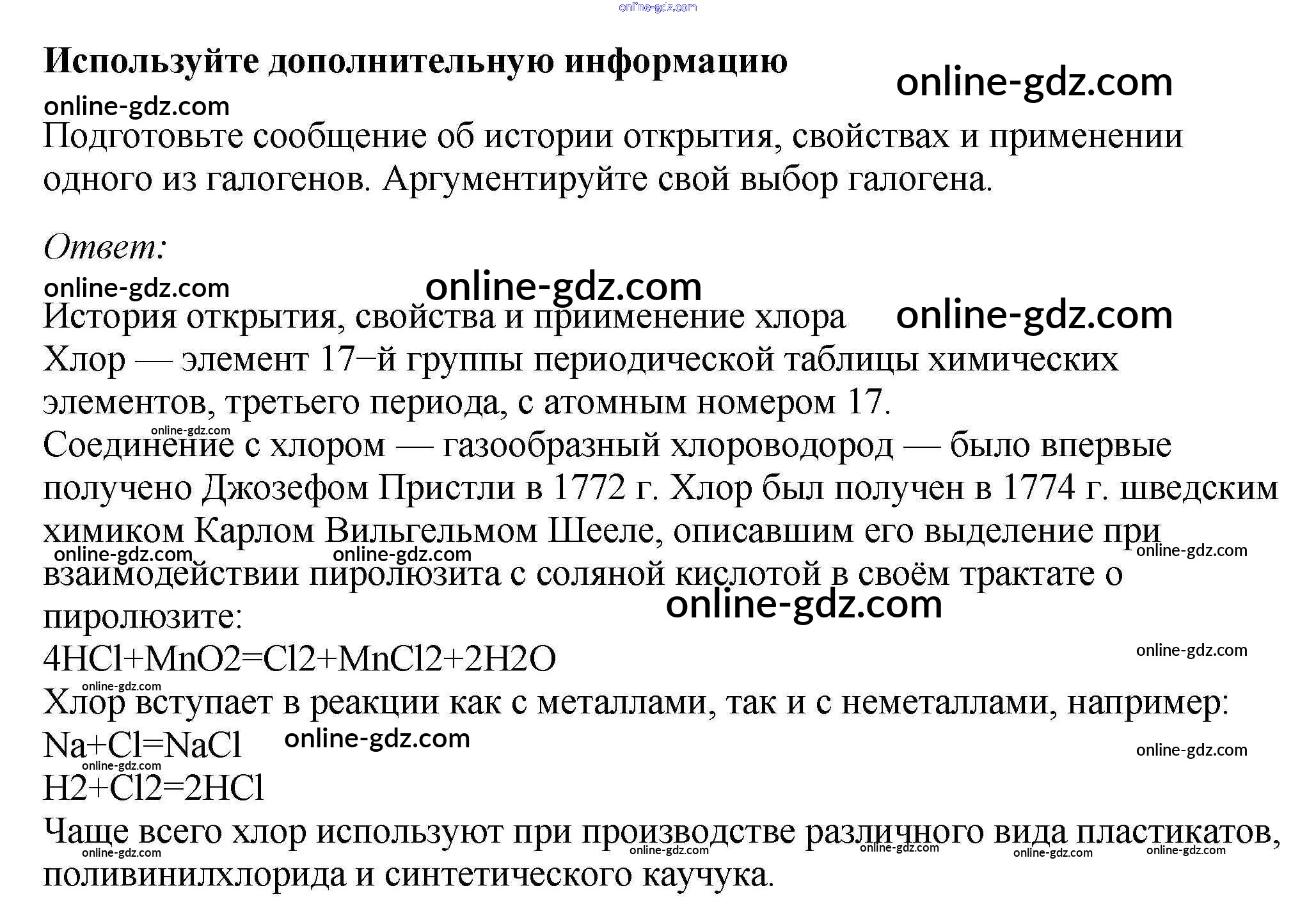 Готовые домашние задания по Химии за 9 класс Учебник Габриелян, Остроумов 2021 - Используйте дополнительную информацию §11. Общая характеристика элементов VlIA-грунпы — галогенов 1