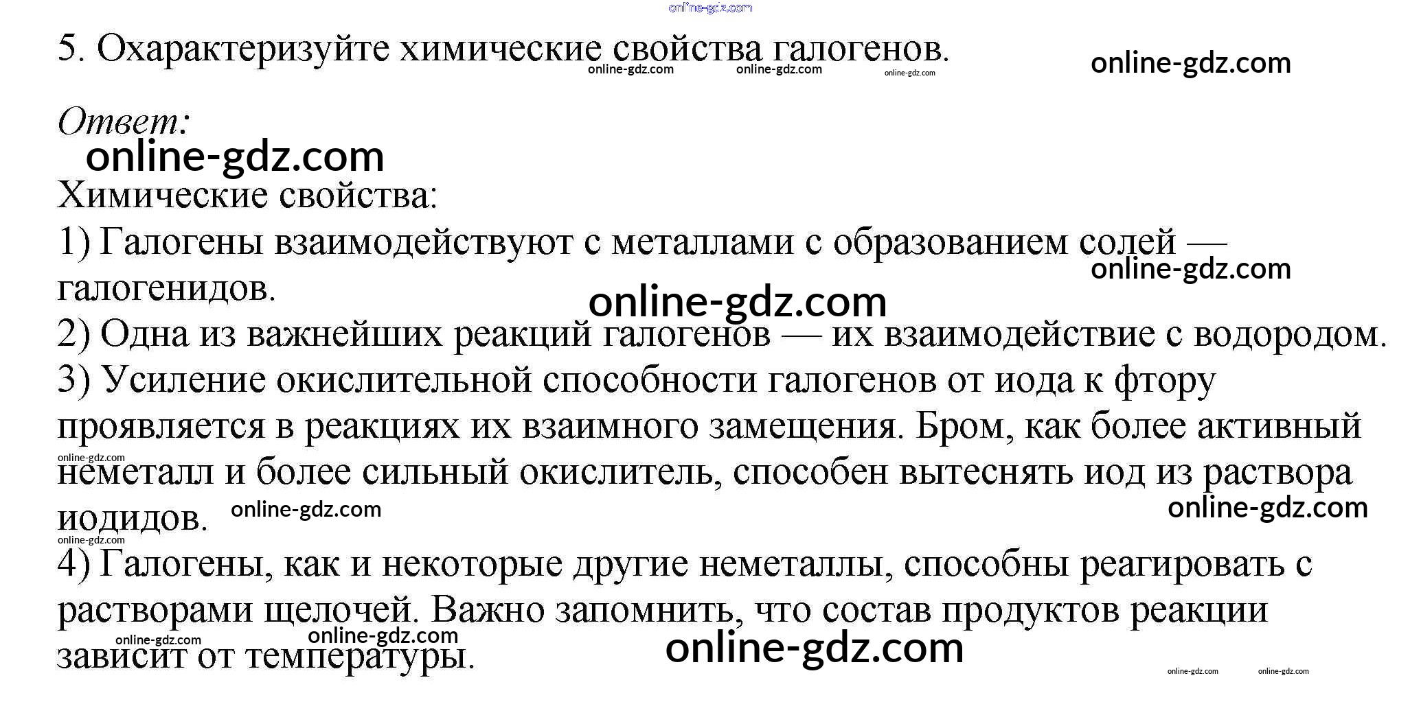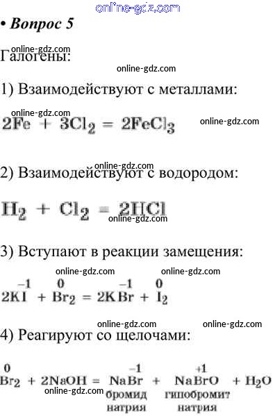 Готовые домашние задания по Химии за 9 класс Учебник Габриелян, Остроумов 2021 - §11. Общая характеристика элементов VlIA-грунпы — галогенов 5
