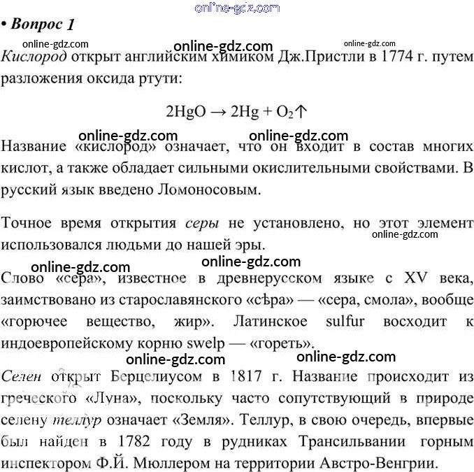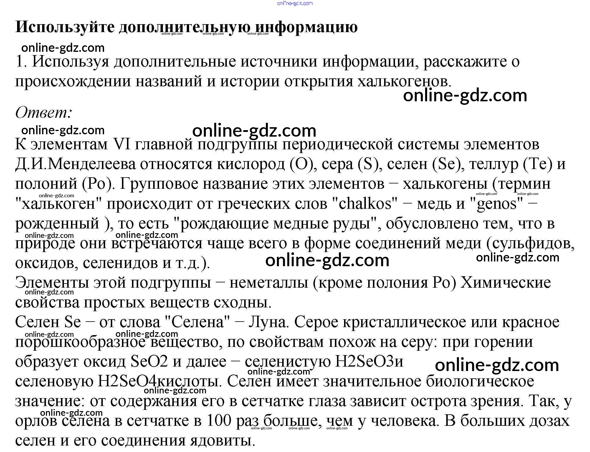 Готовые домашние задания по Химии за 9 класс Учебник Габриелян, Остроумов 2021 - Используйте дополнительную информацию §13. Халькогены. Сера 1