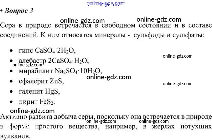 Готовые домашние задания по Химии за 9 класс Учебник Габриелян, Остроумов 2021 - §13. Халькогены. Сера 3