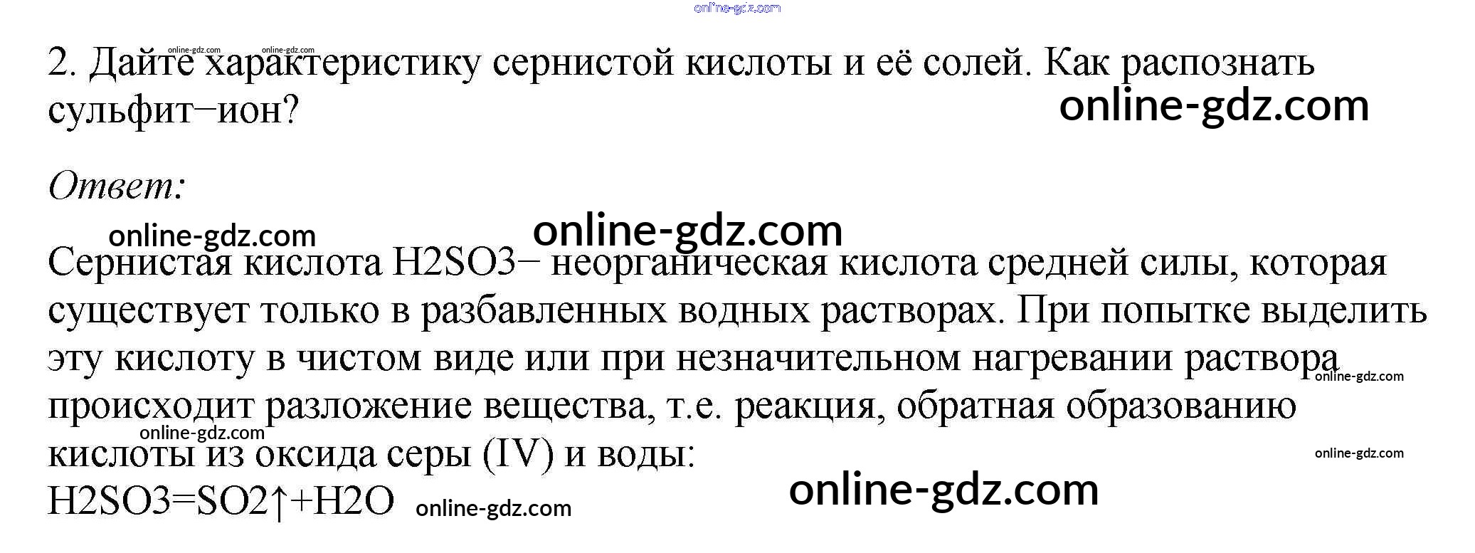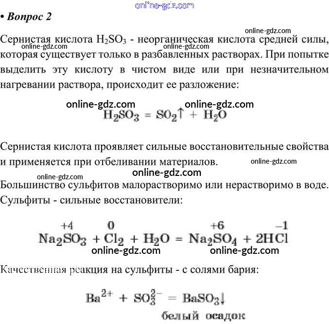 Готовые домашние задания по Химии за 9 класс Учебник Габриелян, Остроумов 2021 - §15. Кислородные соединения серы 2