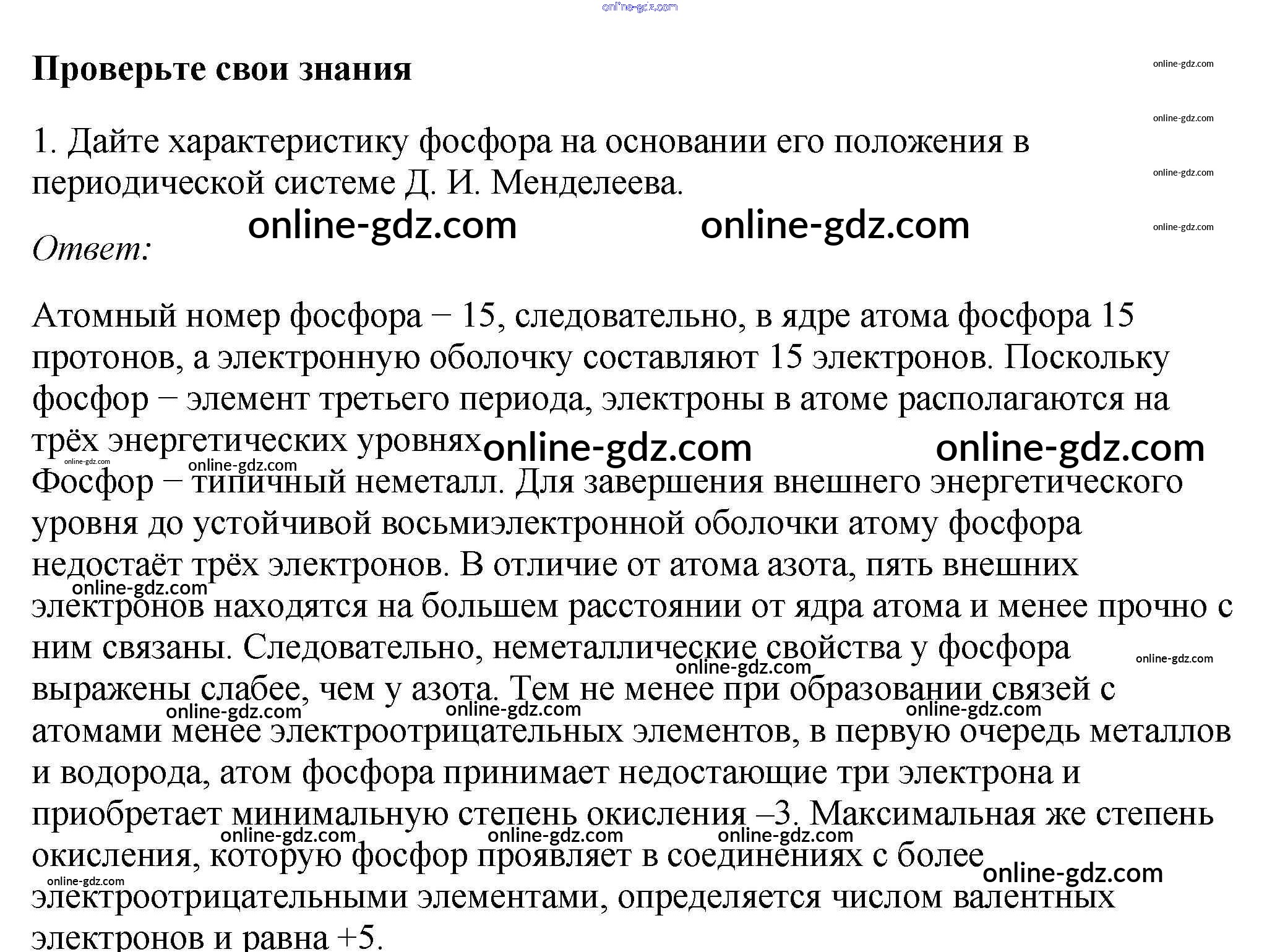 Готовые домашние задания по Химии за 9 класс Учебник Габриелян, Остроумов 2021 - §19. Фосфор и его соединения 1
