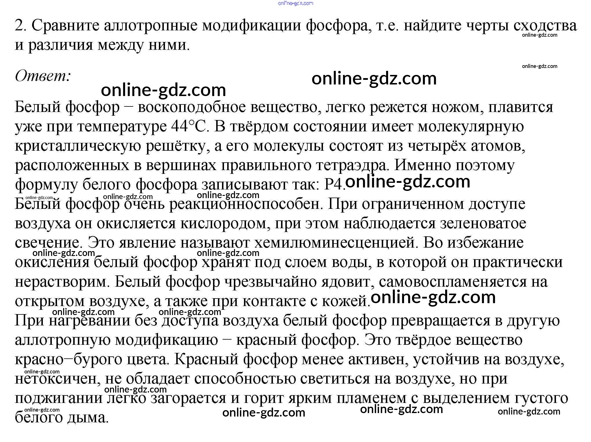 Готовые домашние задания по Химии за 9 класс Учебник Габриелян, Остроумов 2021 - §19. Фосфор и его соединения 2