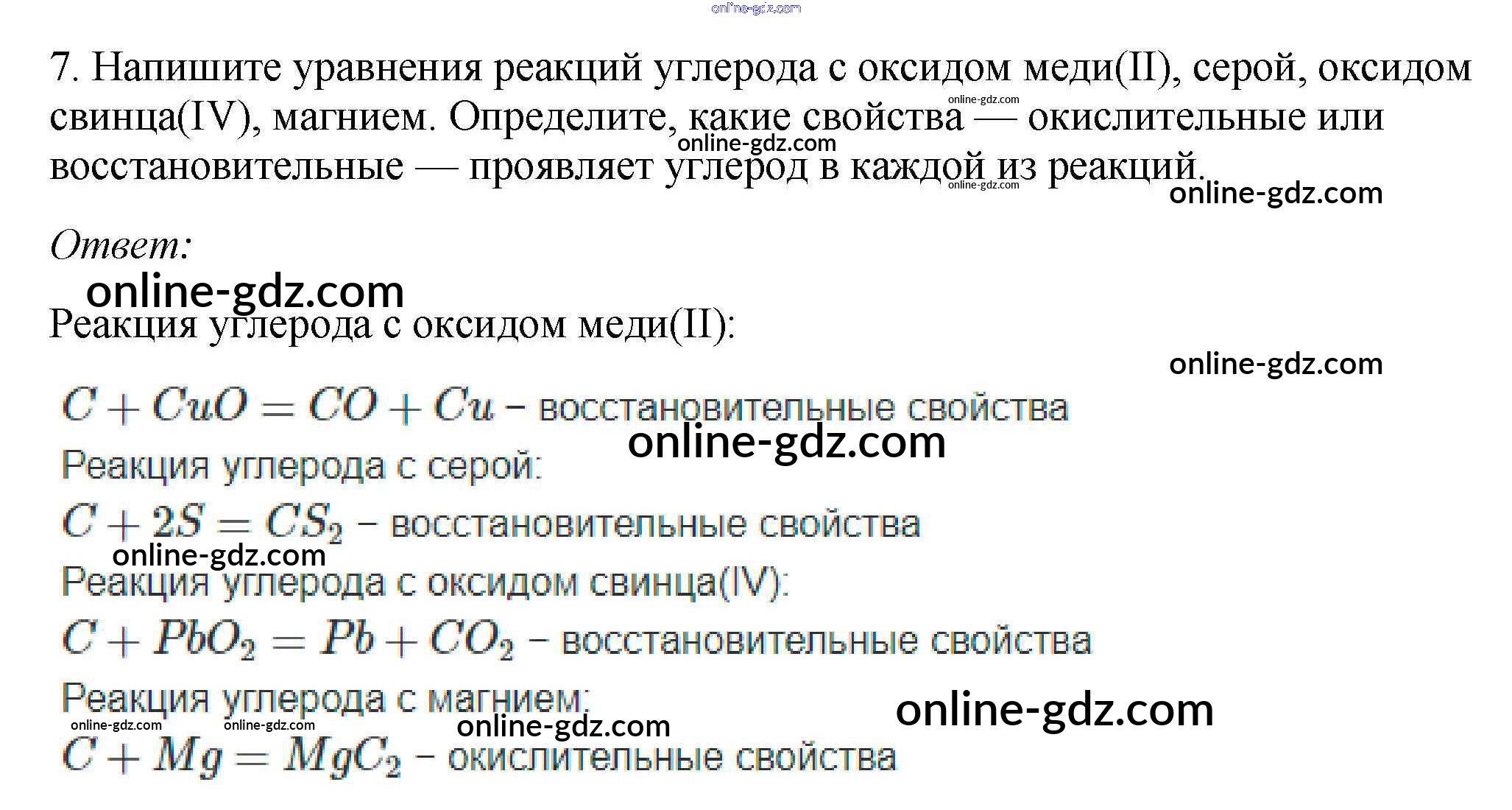 Готовые домашние задания по Химии за 9 класс Учебник Габриелян, Остроумов 2021 - §20. Общая характеристика элементов IVA-грунны. Углерод 7