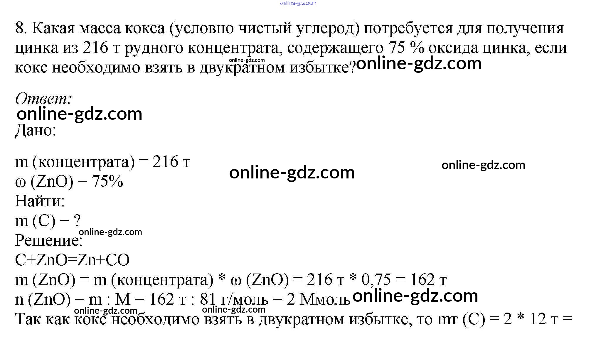 Готовые домашние задания по Химии за 9 класс Учебник Габриелян, Остроумов 2021 - §20. Общая характеристика элементов IVA-грунны. Углерод 8