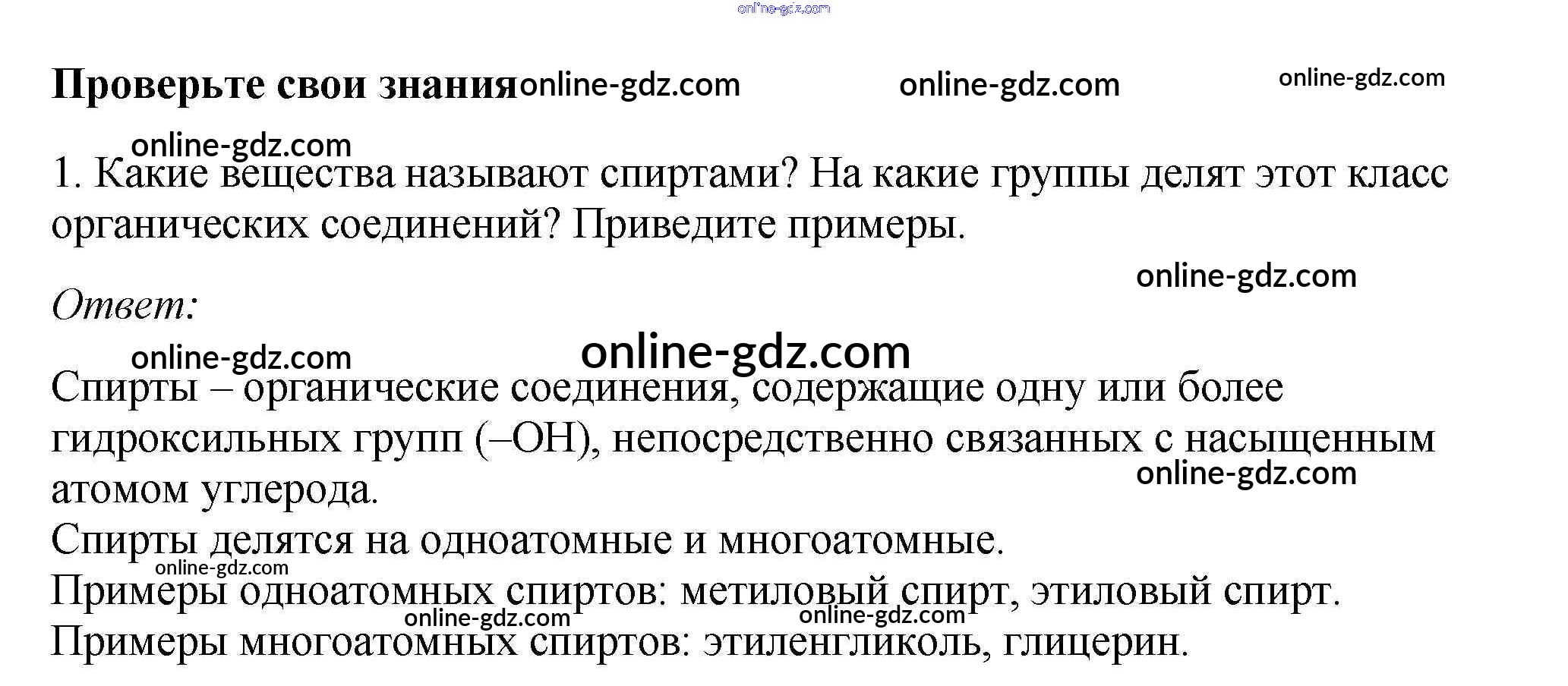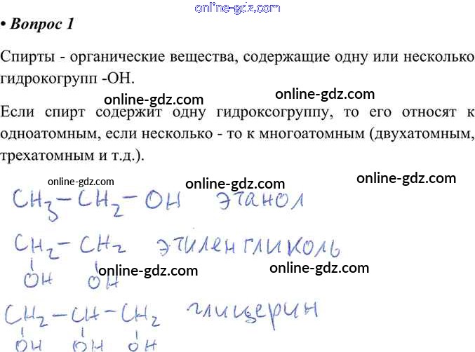 Готовые домашние задания по Химии за 9 класс Учебник Габриелян, Остроумов 2021 - §23. Кислородсодержащие органические соединения 1
