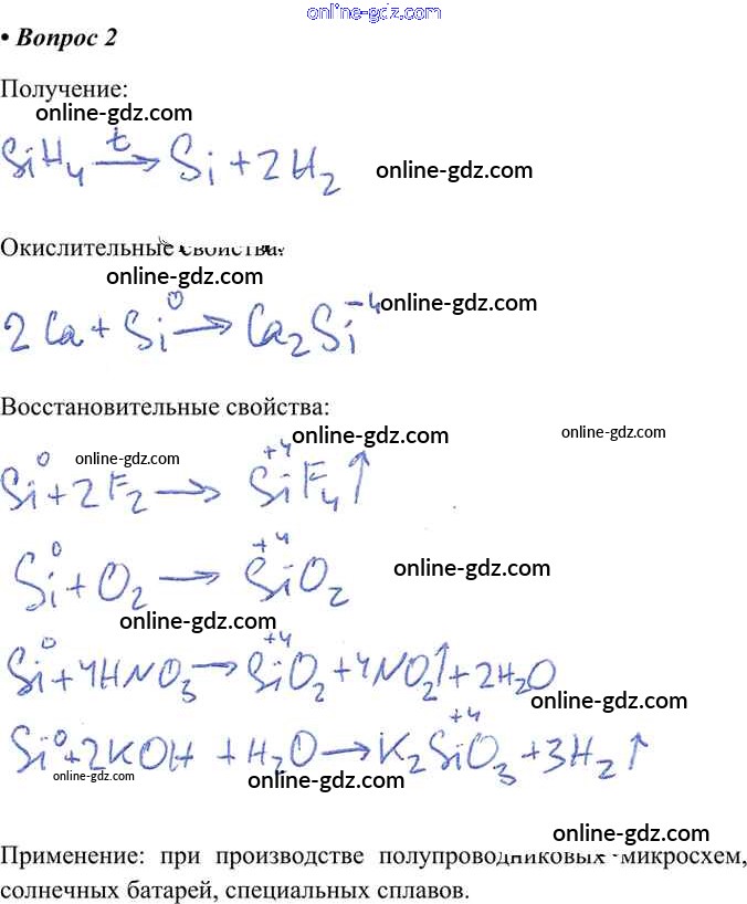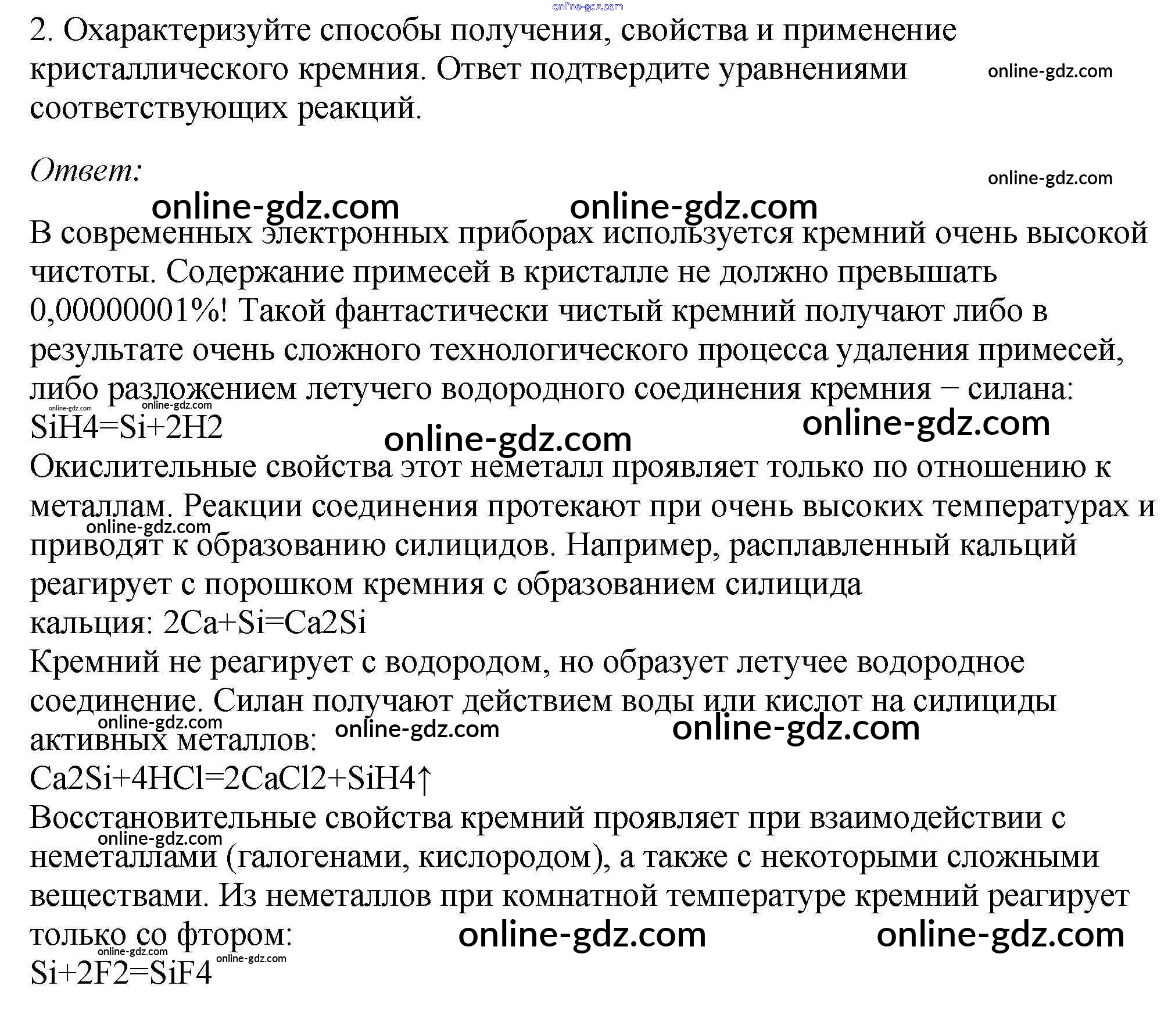 Готовые домашние задания по Химии за 9 класс Учебник Габриелян, Остроумов 2021 - §24. Кремний и его соединения 2