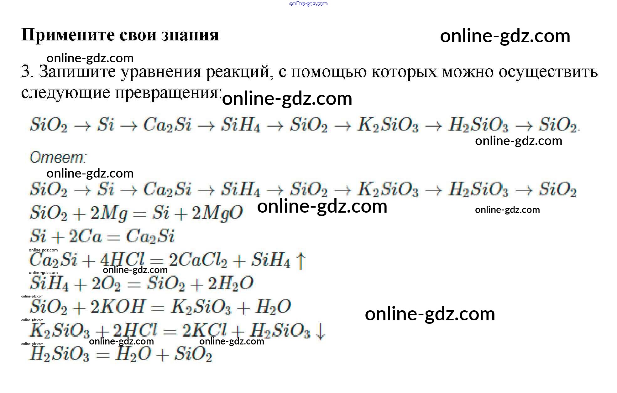 Готовые домашние задания по Химии за 9 класс Учебник Габриелян, Остроумов 2021 - §24. Кремний и его соединения 3