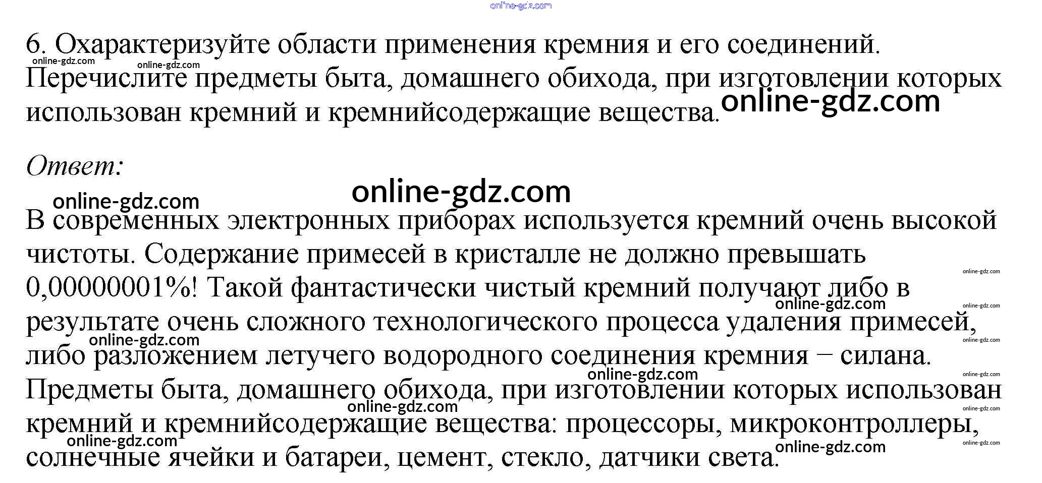 Готовые домашние задания по Химии за 9 класс Учебник Габриелян, Остроумов 2021 - §24. Кремний и его соединения 6