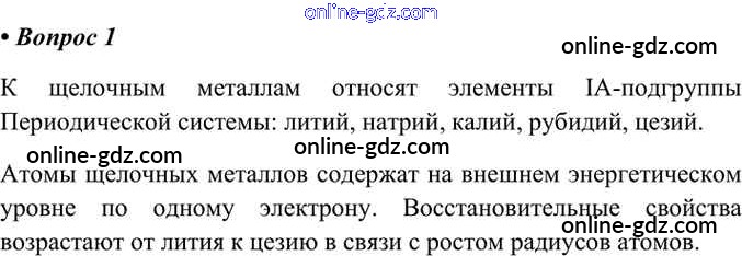 Готовые домашние задания по Химии за 9 класс Учебник Габриелян, Остроумов 2021 - §30. Общая характеристика элементов IA-группы 1