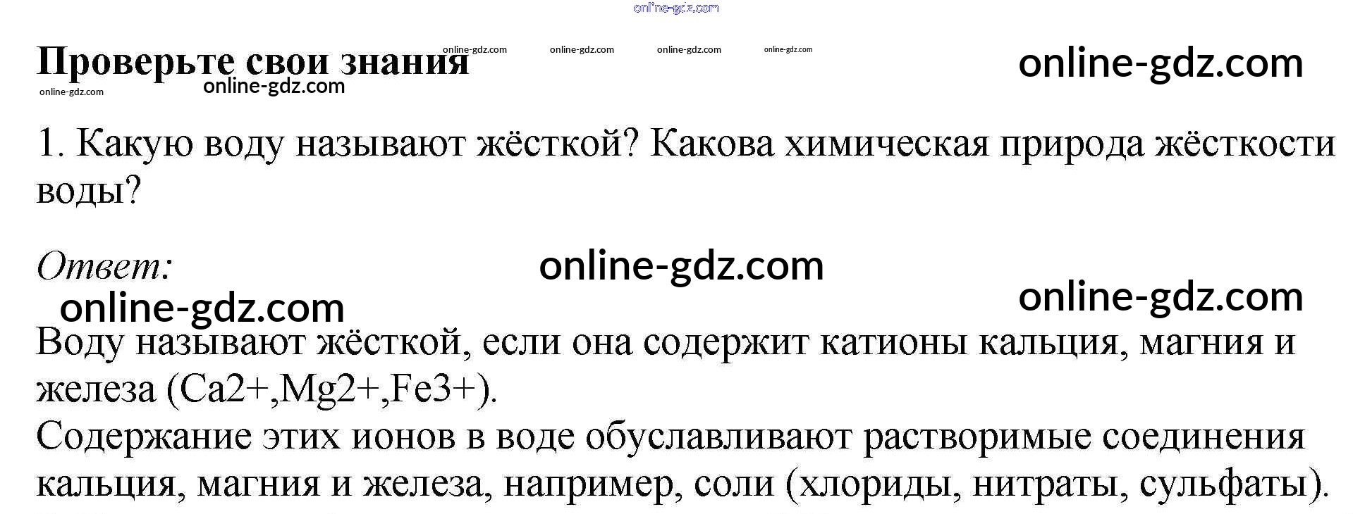 Готовые домашние задания по Химии за 9 класс Учебник Габриелян, Остроумов 2021 - §32. Жёсткость воды и способы её устранения 1