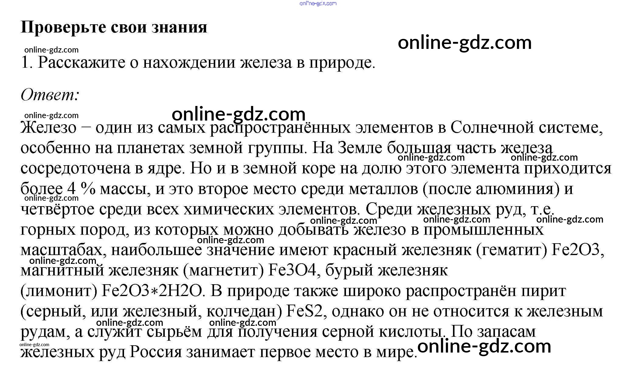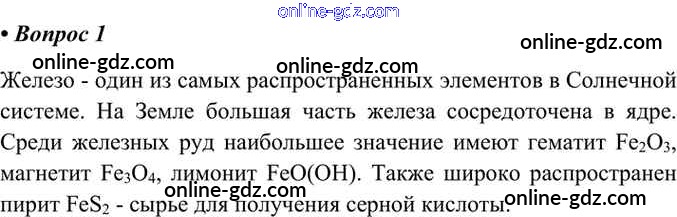 Готовые домашние задания по Химии за 9 класс Учебник Габриелян, Остроумов 2021 - §34. Железо и его соединения 1